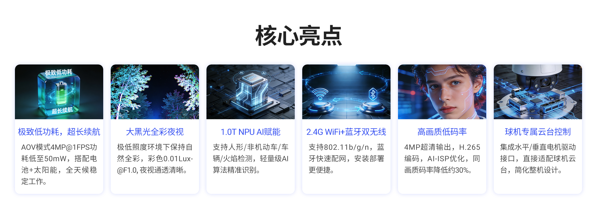 | 夜视能力 | 大黑光全彩、红外+白光双补光 |